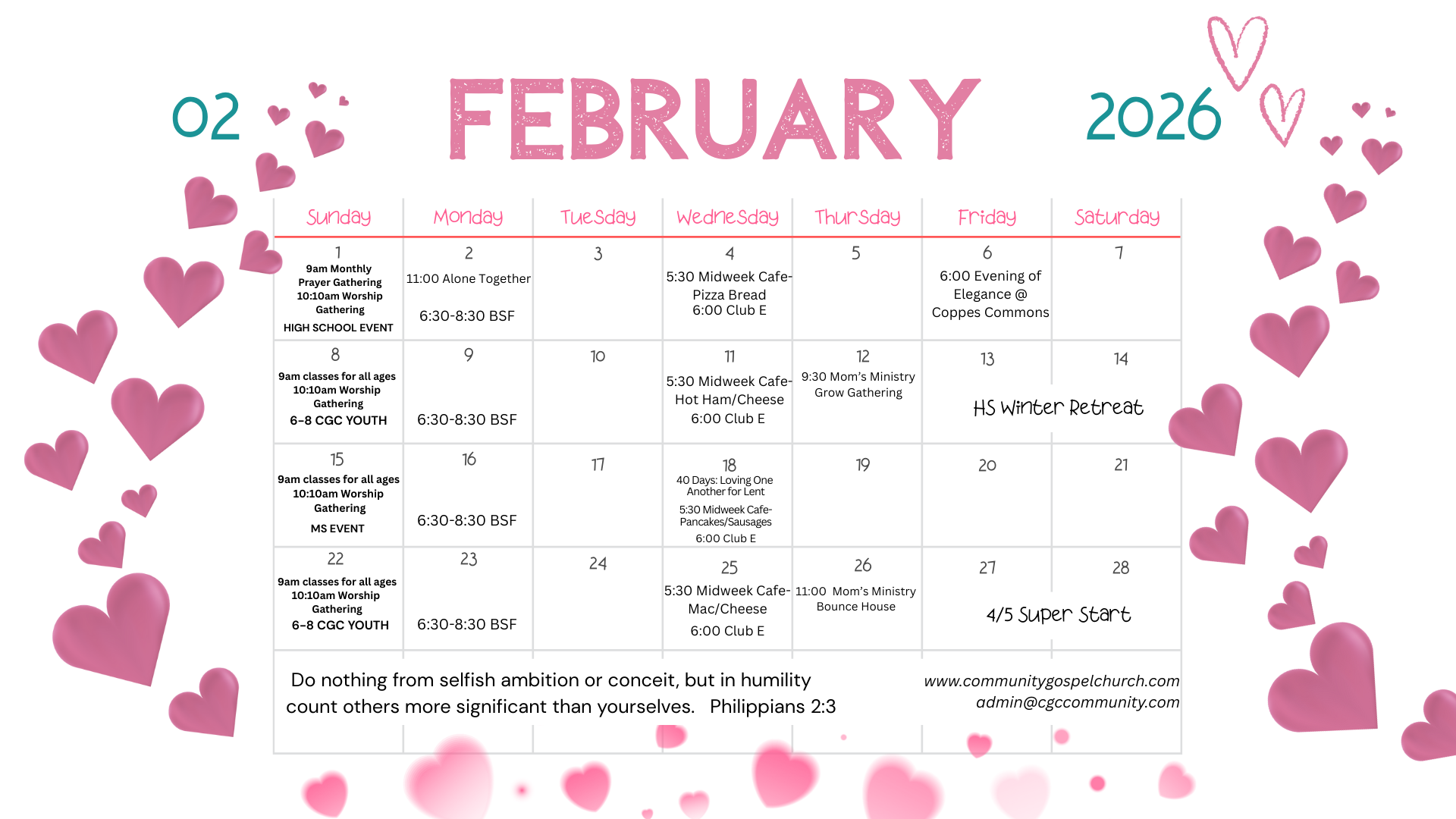 - Evening the Elegance (Adult Youth Group - Feb. 6) - Sign-up and details here.